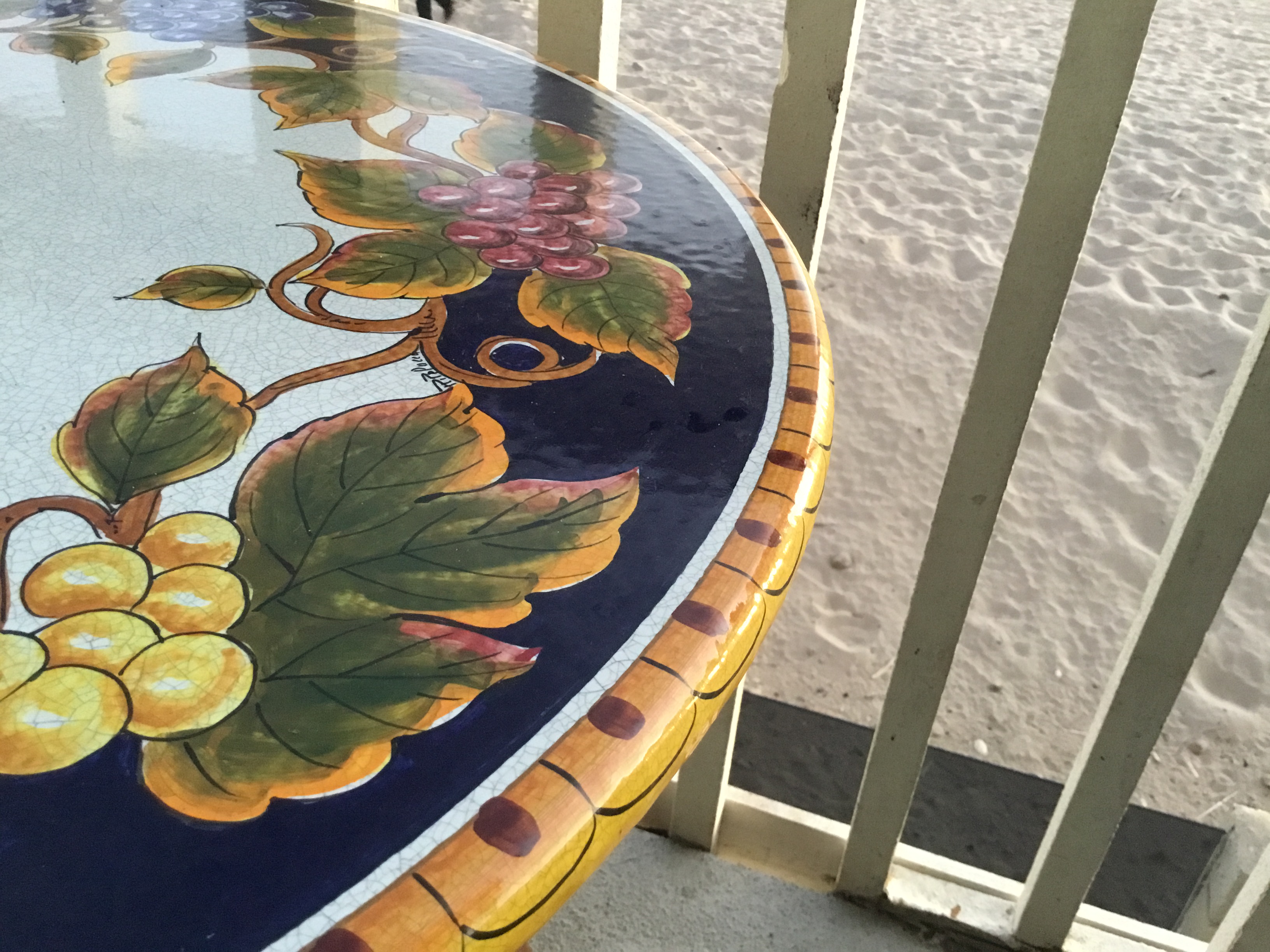 - Table, balcony, sand