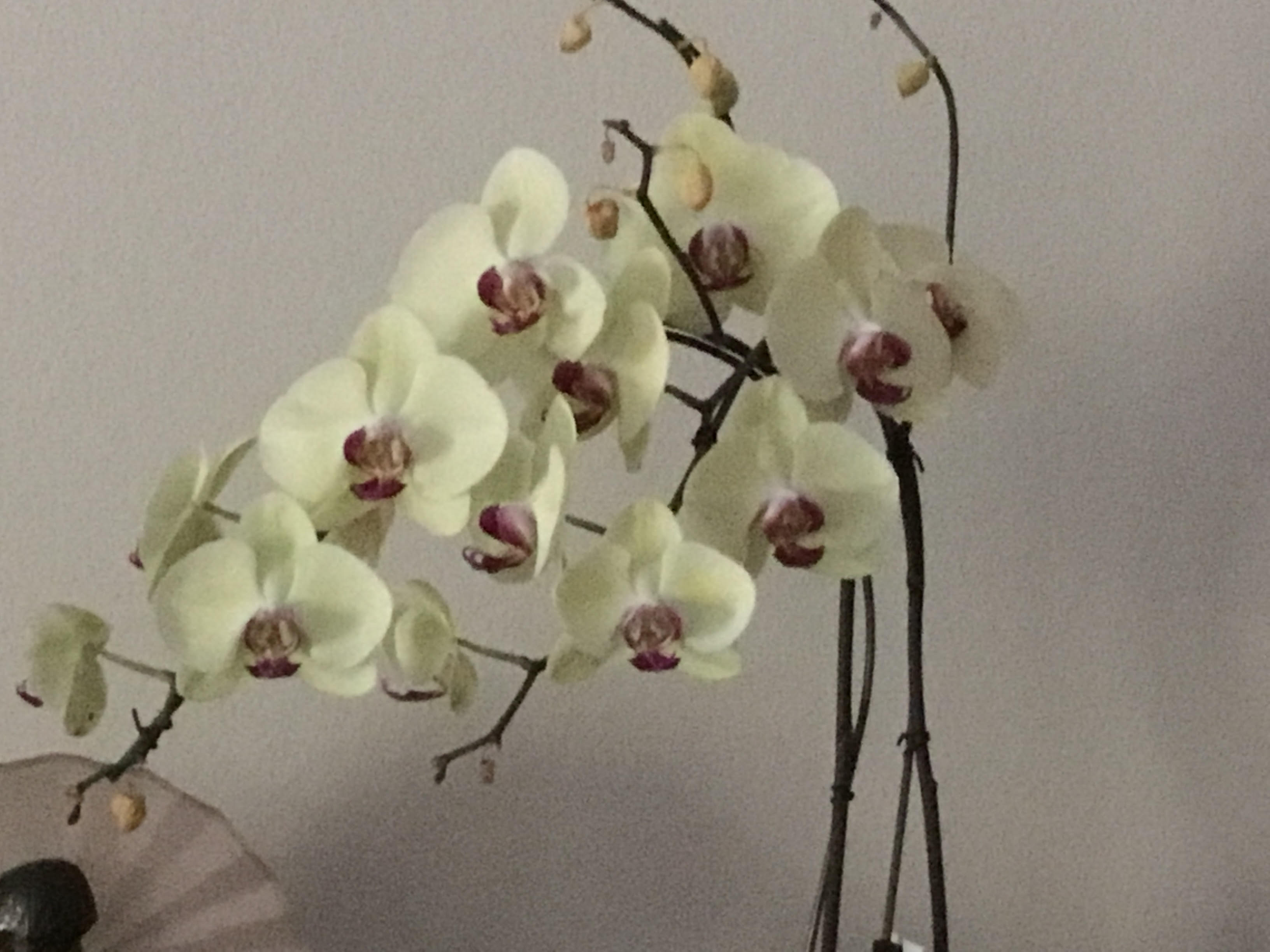 - Mums, orchids, lamp, betty on piano